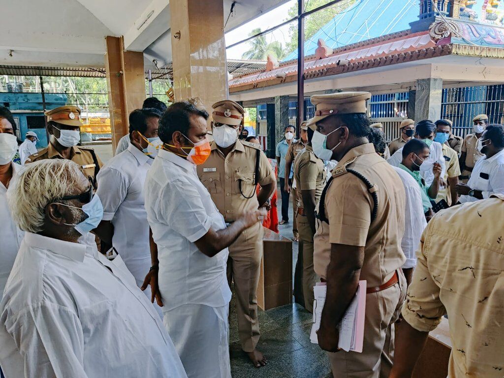 குமரி மாவட்டத்தில் அமைந்துள்ள உலக பிரசித்தி பெற்ற மண்டைக்காடு பகவதியம்மன் கோவிலில் நேற்று 02.06.2021) காலை 6.30 மணியளவில் கருவறையில் தீ விபத்து ஏற்பட்டதையடுத்து பா.ஜ.க சட்டமன்ற உறுப்பினர் எம்.ஆர்.காந்தி நேரில் பார்வையிட்டார். அதன் பின் அவர் வேதனைக்குரிய இந்த தீ விபத்திற்கான காரணிகளை விரைந்து கண்டுபிடித்து ஆகம விதிப்படி ஆலயத்தை திறந்து தினசரி பூஜைகள் நடக்க அறநிலைத்துறை ஏற்பாடு செய்ய வேண்டும் என்று தனது ட்விட்டர் பக்கத்தில் அவர் தெரிவித்தார்.