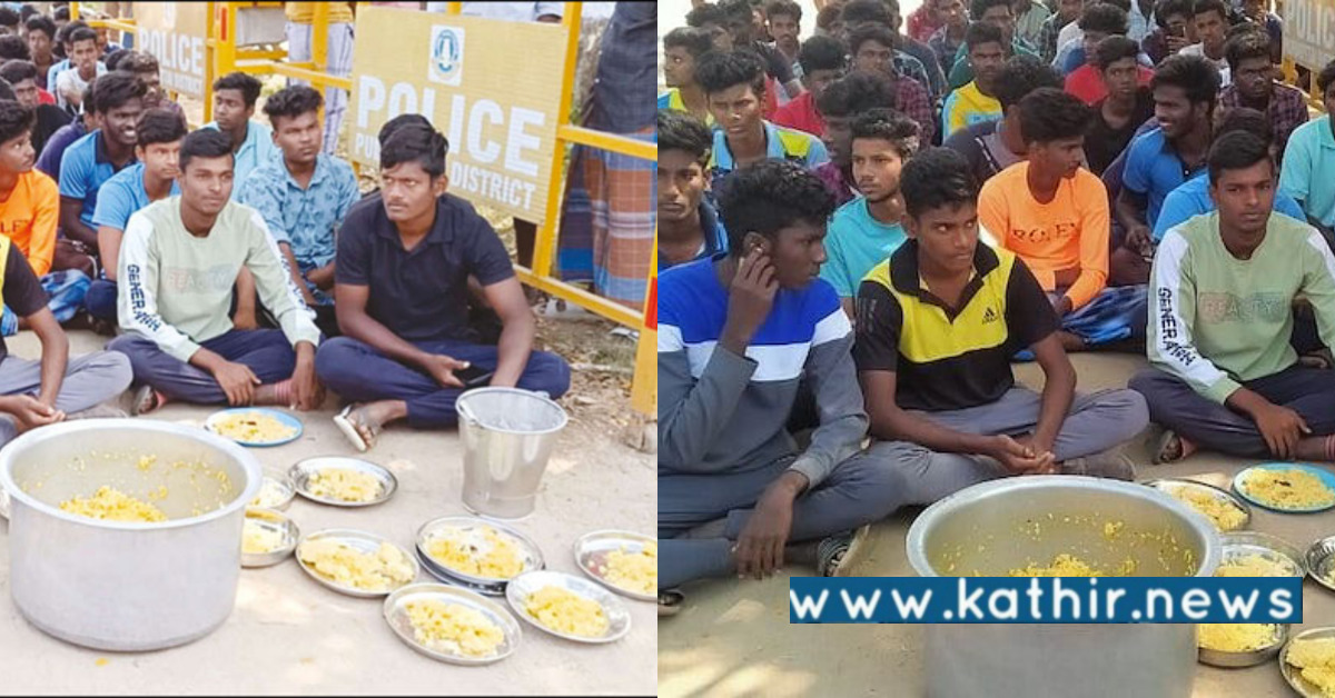 இந்நிலையில் விடுதி சிறந்த மாணவர்கள் ஏராளமானோர் நேற்று காலையில் சாப்பிட்ட தட்டுடன் காலை உணவாக பரிமாறப்பட்ட சாதத்துடன் அண்டாவை தூக்கிக்கொண்டு தற்பொழுது புதுக்கோட்டை மாவட்ட போலீஸ் சூப்பிரண்டு அலுவலகம் அருகே வந்து தரையில் அமர்ந்து போராட்டத்தில் ஈடுபட்டு இருக்கிறார்கள். அதிகாரிகள் பேச்சு வார்த்தை நடத்தி மாணவர்களை சமாதானப்படுத்தினார்கள். குறிப்பாக போராட்டத்தில் ஈடுபட்டு மாணவர்கள் விடுதியில் உணவு தரத்துடன் போடப்படுவது இல்லை என்று ஒரு குறையை முன் வைத்து இருந்தார்கள்.