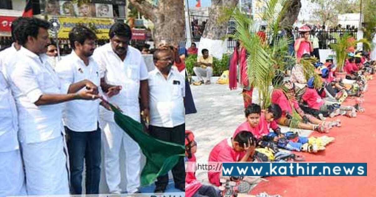 அதேபோல் இரண்டு கோடியில் திறந்தவெளி ரோலர் ஸ்கேட்டிங் சறுக்கு தளம், டாய்லெட்டுகள், நுழைவாயில் மற்றும் வாலிபால் என பல்வேறு அம்சங்கள் மைதானத்தில் அமைக்கப்பட்டு இருந்தது. இவற்றை திறந்து வைப்பதற்காக அமைச்சர் உதயநிதி மார்ச் 14ஆம் தேதி வருகை தர இருந்தார். அமைச்சரை வரவேற்பதற்காக தி.மு.கவினர் ஊர் முழுவதும் இரும்பு கம்பிகளால் கொடிகளை கட்டி இருந்தார்கள். சில இடங்களில் காற்றில் விழுந்த நிலையில் பொதுமக்கள் சாலை ஓரமாக அதை எடுத்து வைத்தும் சென்றார்கள். மேலும் பல்வேறு பகுதிகளில் விதிகளை மீறி பிளக்ஸ் பேனர்கள் வைக்கப்பட்டு இருந்தால் பொதுமக்கள் அவதி அடைந்து கொண்டு செல்ல வேண்டிய ஒரு சூழலை ஏற்பட்டது. வழி நெடுகிலும் கட்சி நிர்வாகிகள் வரவேற்பு பலமாக ஏற்பாடு செய்யப்பட்டு இருந்தது. இதன் காரணமாக மதியம் 12:30 மணிக்கு வருகை தருவதாக சொன்ன அமைச்சர் 3:00 மணிக்கு தான் வருகை தந்தார். இதனால் காலை 11 மணிக்கு அழைத்து வரப்பட்ட சிறுவர்கள் மற்றும் மாணவர்கள் சோர்வாக தரையில் அமர்ந்து இருந்தார்கள்.